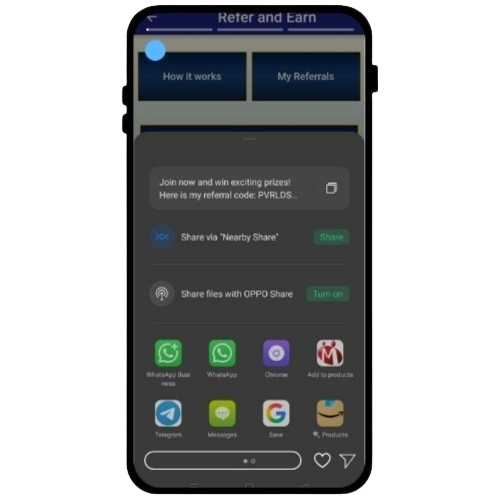 To invite your friends and partners, simply go to the 'refer & earn' section and tap on the 'Share' icon.